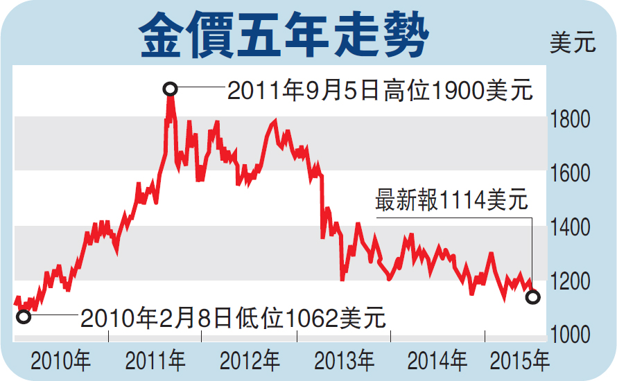 彭博商品指数在昨日曾跌1%,并连跌五天,为自从三月份以来最长的跌浪,黄金期货价格在昨日曾跌至逾五年以来低位,工业用金属、农作物和美国天然气亦同时下跌,原因是衡量美元走势的一个指数曾升至四月十三日以来最高位。